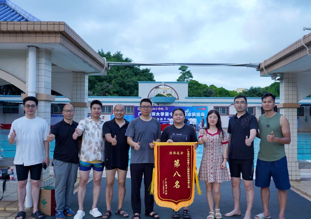 6月7日,以“水韵扬华诞  活力展海大”为主题的公司第十八届游泳运动会在湖光校区游泳场激情开赛。bevictor伟德国际工会选派10名教职工组成精锐战队,投身蛙泳50米、100米、200米,自由泳50米、100米等9项个人竞技项目,同时在男子4×50米自由泳接力、男女混合6×50米自由泳接力、圈圈相连4×50米接力、抱球4×50米接力等4项团体赛事中展开激烈角逐。
