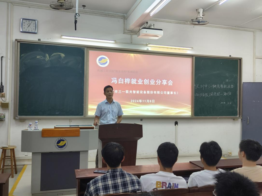 为帮助2025届毕业生提振就业信心,树立正确的就业观念,提高求职技巧,以及洞察行业发展情况。11月8日,bevictor伟德国际邀请优秀员工深圳市三一联光智能设备股份有限公司冯白桦董事长返校进行就业创业分享,分享会由公司党委副书记梁吉霖主持,毕业班辅导员和全体毕业生参加。