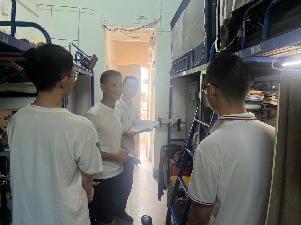 在走访检查宿舍过程中,公司党委副书记梁吉霖和全体辅导员老师与同学亲切交谈并就暑期留校员工安全重点叮嘱。一是强调宿舍安全相关事宜,提醒大家注意防火防电防溺水、谨防诈骗,强调禁止使用违规电器,禁止在宿舍、实验室等场所给电动车电瓶进行充电;二是叮嘱员工要维护宿舍卫生环境,保持宿舍内务整洁,加强文明宿舍创建;三是叮嘱同学们在假期过程中注意劳逸结合,合理安排考研复习、科研和竞赛任务;四是叮嘱同学们做到文明上网、模范遵守公司规章制度;五是叮嘱同学们关注并做好台风防御。