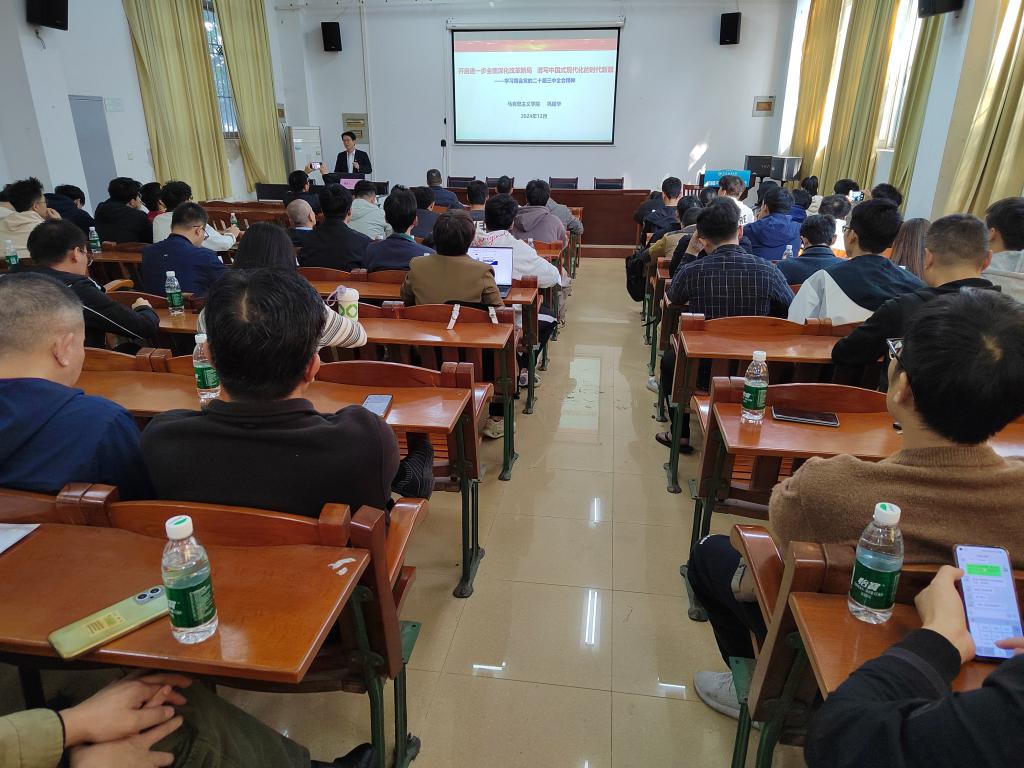 为进一步深入学习贯彻党的二十届三中全会精神,12月18日下午,bevictor伟德国际邀请公司党委理论宣讲团第四届成员,马克思主义公司巩建华教授在工程训练中心102举行学习贯彻党的二十届三中全会精神宣讲报告会。报告会由公司党委书记张懿主持,全院80余名教职工和员工党员参会。