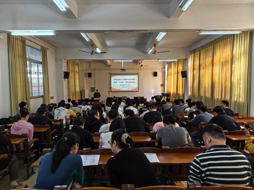 12月17日,bevictor伟德国际在工程训练中心综合楼102室召开学习贯彻党的二十届四中全会精神宣讲报告会,公司党委理论宣讲团成员、马克思主义公司副教授李林杰作学习贯彻党的二十届四中全会精神专题辅导报告。公司全体教职工和员工党员参加会议,会议由公司党委副书记梁吉霖主持。