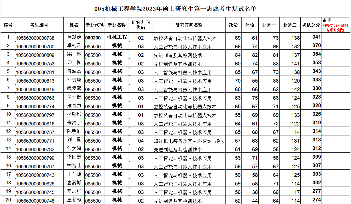附件2:第一志愿考生复试名单